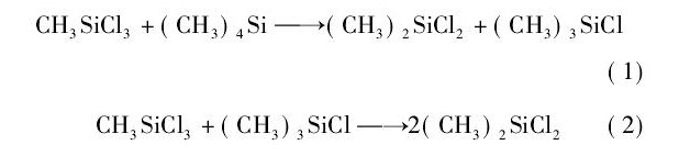 有機(jī)硅低沸物歧化的主要反應(yīng)見(jiàn)式1~式2。