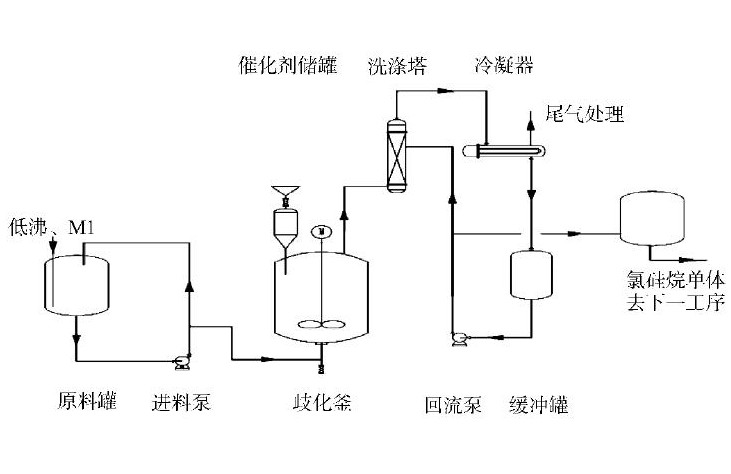 1.2 有機(jī)硅低沸物歧化反應(yīng)及流程