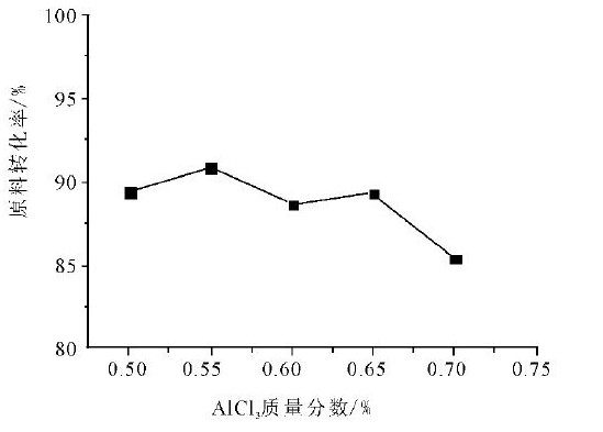 圖2 三氯化鋁用量對(duì)原料轉(zhuǎn)化率影響
