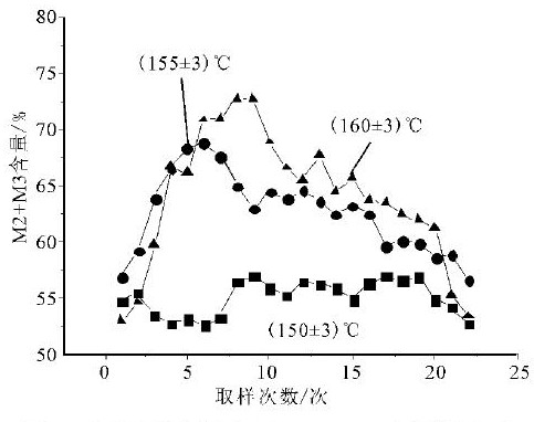 圖3 不同反應(yīng)溫度下M2+M3含量的變化