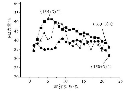 圖4 不同反應(yīng)溫度下M2含量的變化