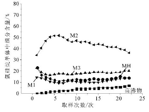 2.4 單個(gè)歧化周期內(nèi)氯硅烷單體中各組分變化
