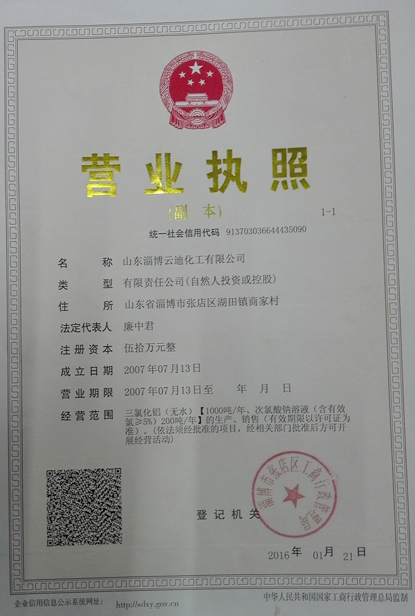 云迪化工,行業新標國家標準三氯化鋁生產企業